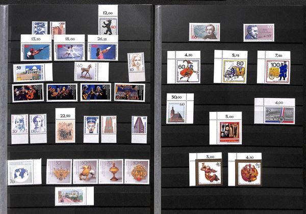 GERMANIA - BERLINO OVEST - 1988/1989 - Collezione completa di valori emessi nel periodo - in due pagine di raccoglitore - gomma integra (170+)