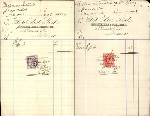 GRAN BRETAGNA - 1894/1939 - Insieme di 4 ricevute con valori postali diversi usati fiscalmente