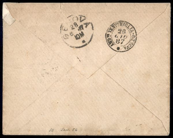 Lettera affrancata con Marca da Bollo 5 cent (9) annullata con numerale 2392 da Varazze 25 giu. 87 per Arenzano e qui tassata con 30 cent Segnatasse (7) - pił volte rispedita