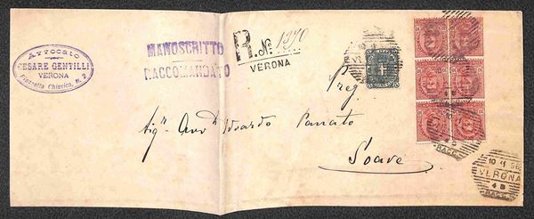 Lettera due porti affrancata con quartina 10 cent (60) + raccomandata affrancata con blocco di sei 10 cent (60) + 5 cent