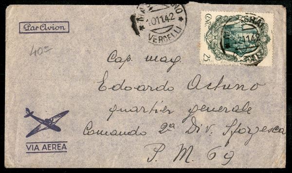 Lettera in tariffa ridotta militare con 25 cent Galilei (463) da Masserano Vercelli 10.11.42 diretta alla P.M. 69