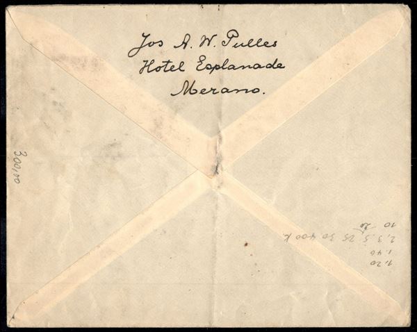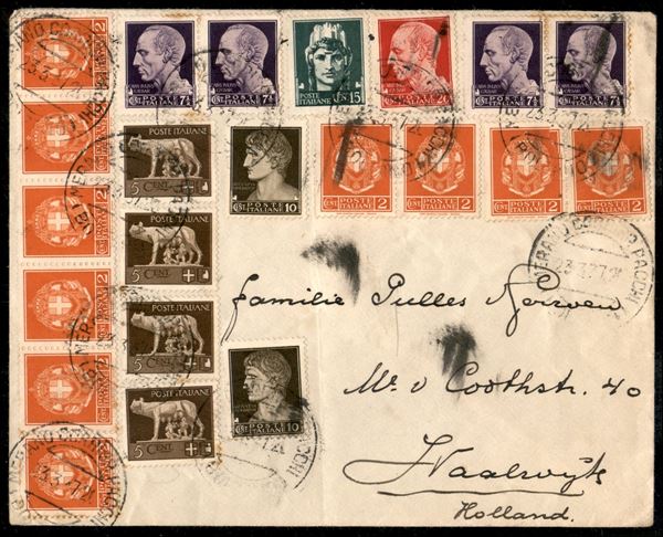 Lettera per l'Olanda affrancata per lire 1 e centesimi 25 con ventidue francobolli della serie Imperiale tra cui dieci 2 cent e quattro 7 1/2 cent (242A/247) da Merano del 23.3.37 - interessante