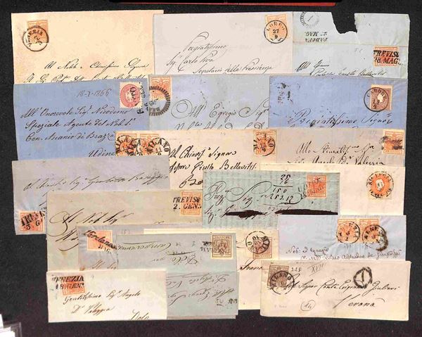 LOMBARDO VENETO - Insieme di 18 lettere e frontespizi con affrancature in genere della I emissione - insieme di buona qualità