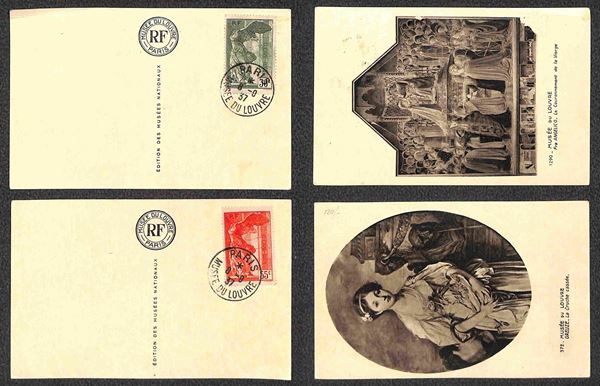 Louvre (359/360) - i due valori usati su due cartoline - Parigi 8.9.37