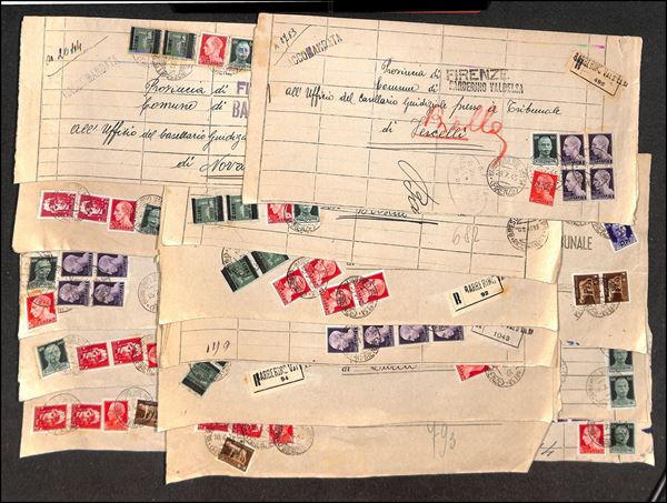 LUOGOTENEZA - 1945 - 13 pieghi raccomandati da Barberino Val D'Elsa a Brescia con affrancature (4.80 lire) multiple miste del periodo - interessante insieme - da esaminare