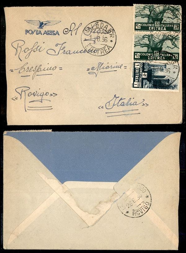 Maiedagà Eritrea (P.ti 9) - aereogramma per Rovigo del 18.6.36