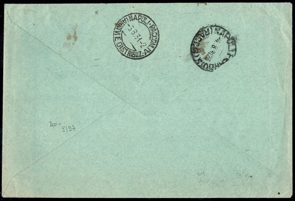 Manoscritti raccomandati aperti (notifica atti giudiziari) con 5 cent Imperiale + striscia di tre 75 cent Virgilio (243 + 287) da Pompei 4.8.31 per Napoli