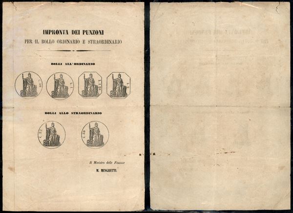 Marche da Bollo - Foglietto Minghetti - Impronta dei Punzoni per il Bollo Ordinario e Straordinario