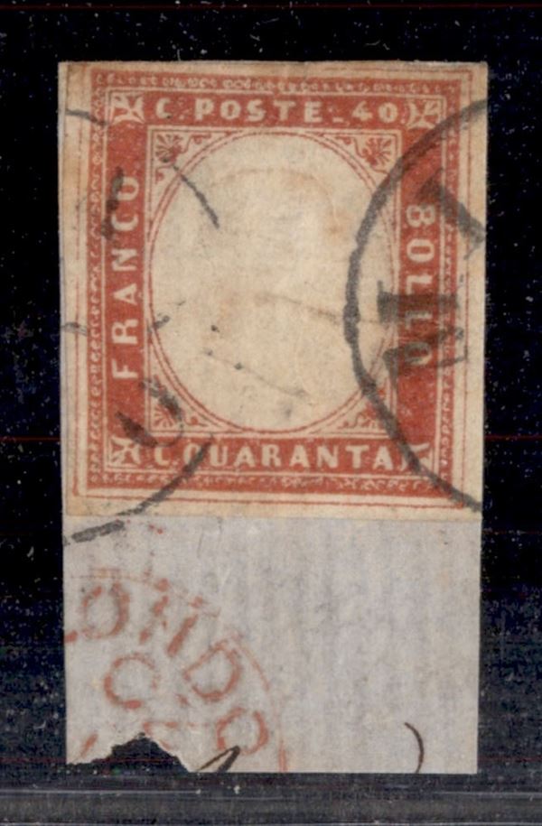 Milano - 40 cent rosso mattone (16B - Sardegna) con filetto di riquadro (posiz. 12) su frammento