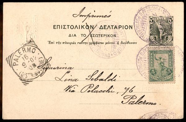 Montenegro Piroscafo Postale Italiano 10.9.02 - cartolina da Corfù a Palermo
