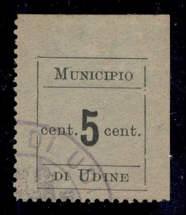 Municipio di Udine - 1918 C. 5 (1) su carta colorata dentellato da due lati - Chiavarello