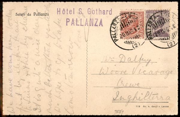 Pallanza Locarno - 1923 - 2 cartoline per la Gran Bretagna