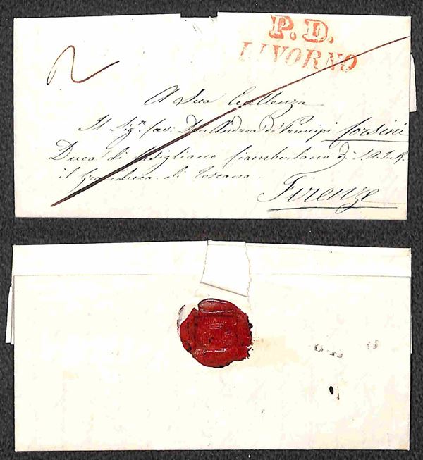 PD Livorno (rosso) - lettera per Firenze del 26.2.1841