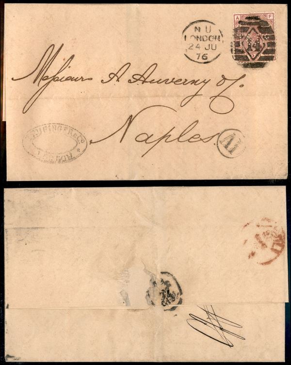 Perfin (T. & C.) - 2 1/2 pence (47 - tav. 4) su lettera da Londra a Napoli del 24.6.76
