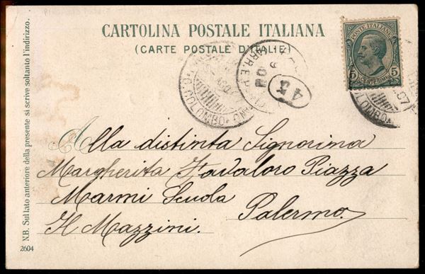 Piroscafo Postale Italiano C. Colombo - cartolina per Palermo del 9.8.07