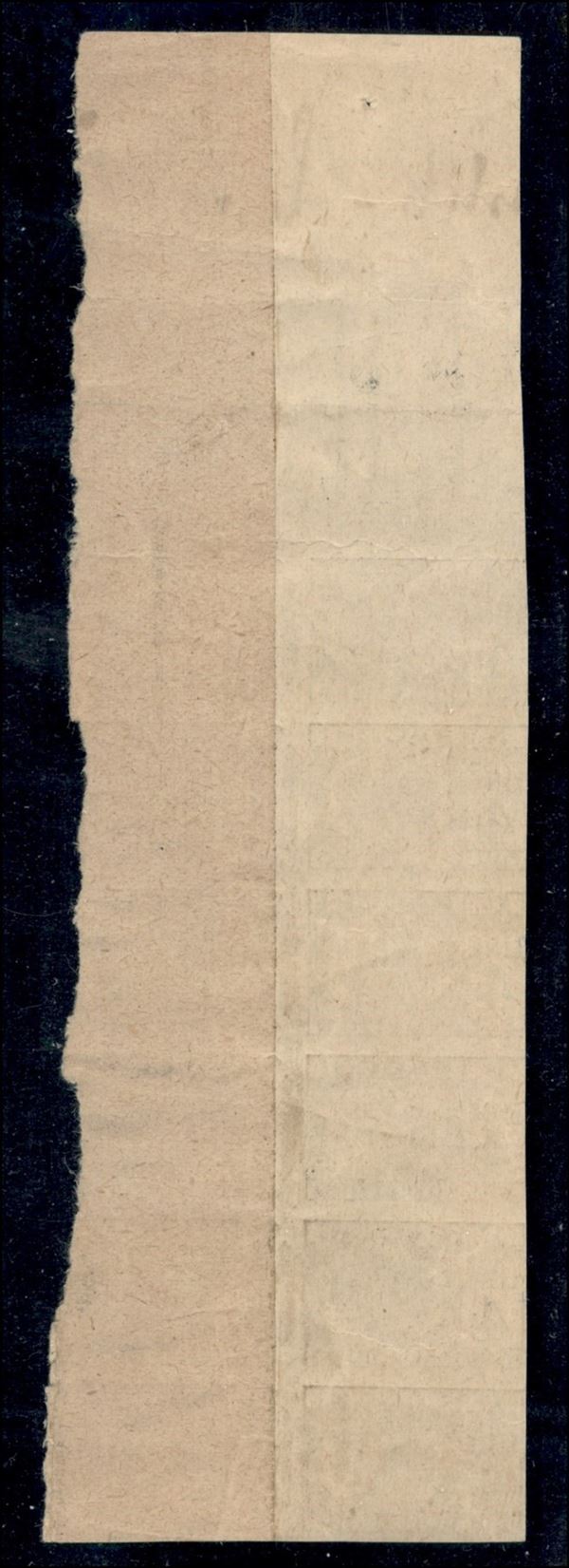 Prove di Macchina - 1927 - 4 lire Pacchi Postali (33) - striscia verticale di 6 bordo di foglio in alto - carta ricongiunta - strappati sul lato destro - sempre senza gomma