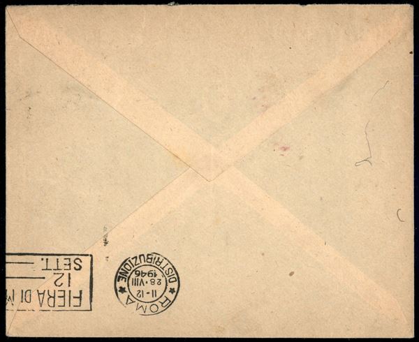 Quartina del 50 cent Democratica su busta da Prato del 27.8.46 diretta la Ministero della Guerra Ufficio Dispersi Roma