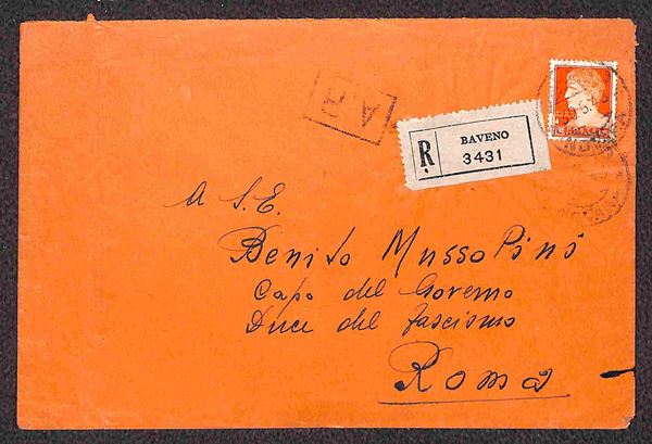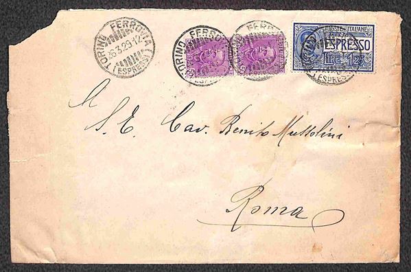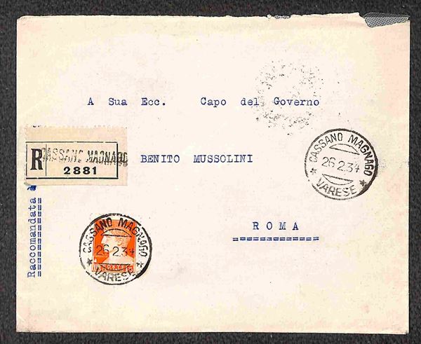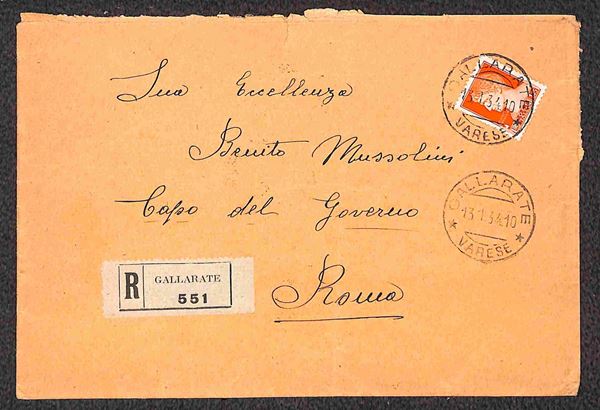 Quattro raccomandate e un espresso indirizzate a S.E. Benito Mussolini periodo 1929/1934 ben conservate