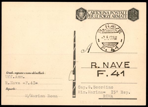 R. Nave F. 41 - cartolina propagandistica per Roma del 2.5.43