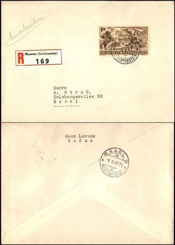 Raccomandata affrancata con 1 fr (205) da Mauren a Basilea del 6.5.42
