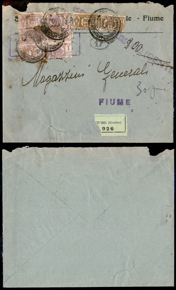 Raccomandata da Fiume per cittą del 3.4.456 con affrancatura d'emergenza per 3.05 lire (Pacchi Postali 24 + 30 tre)