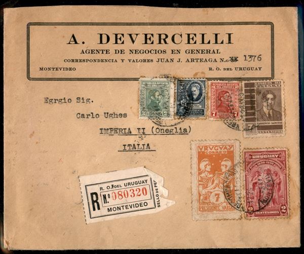 Raccomandata da Montevideo a Imperia del 20.9.38 con affrancatura multipla
