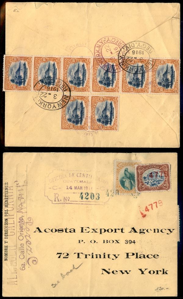 Raccomandata per New York del 14.3.16 con affrancatura multipla fronte retro