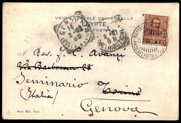 Raffaele Rubaltino Piroscafo Postale Italiano (in viola) su 10 cent Floreale (71) - cartolina da Aden a Genova del 31.1.07