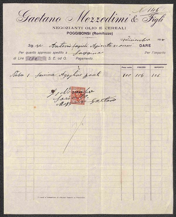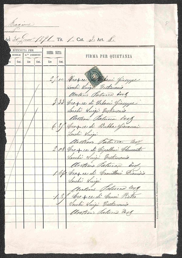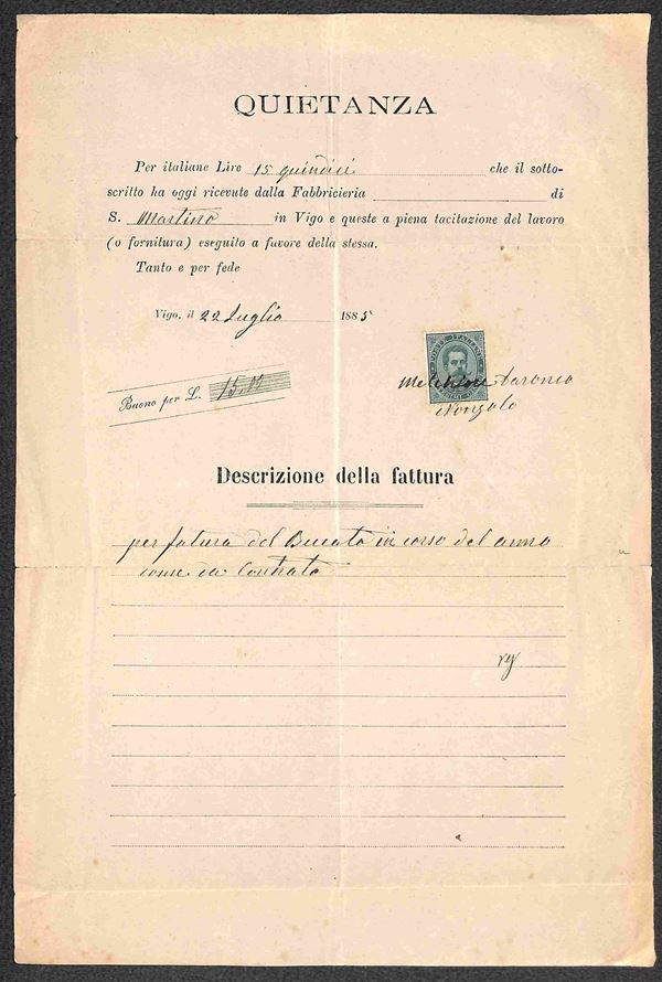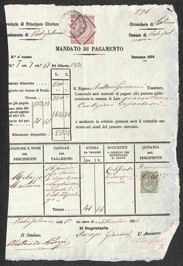 REGNO - 1874/1918 - Cinque documenti con uso fiscale di valori del periodo
