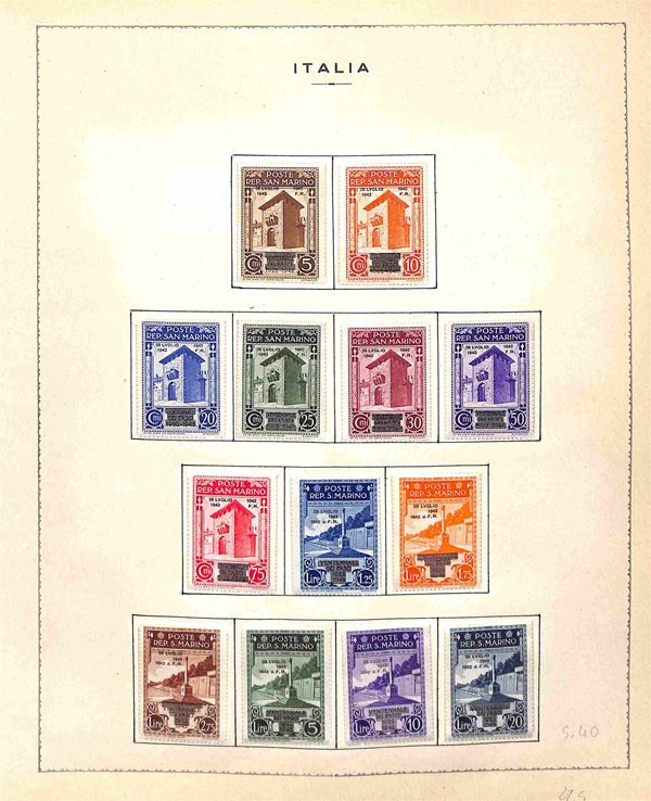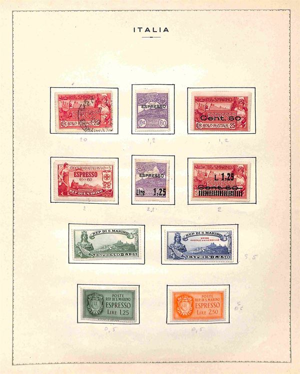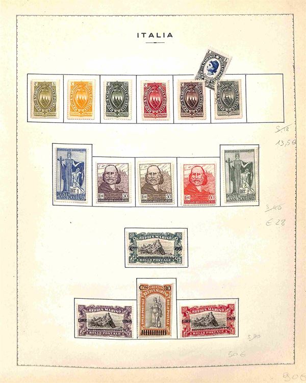 SAN MARINO - 1877/1960 - Buon inizio di collezione in taschine d'epoca in fogli d'album - in genere valori nuovi con gomma integra - conteggiati fino al 1945 come linguellati (800++)