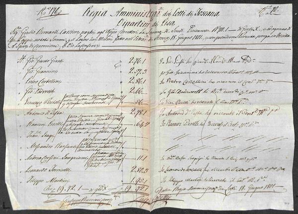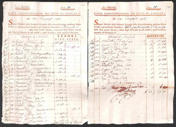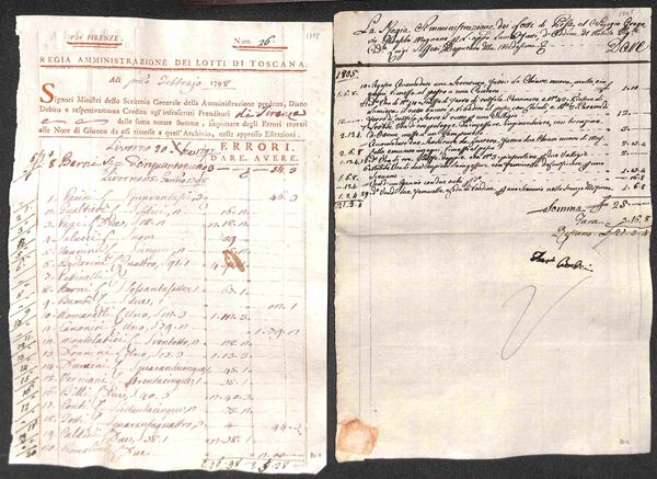 TOSCANA - 1763/1805 - Regia Amministrazione dei Lotti di Toscana - 16 documenti contabili del periodo