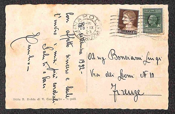 Tre lettere del 1906/32 affrancate con Marche da Bollo Aquila Sabaudia o Effigie (10 - 12 - 16) in affrancatura mista con francobolli - da esaminare