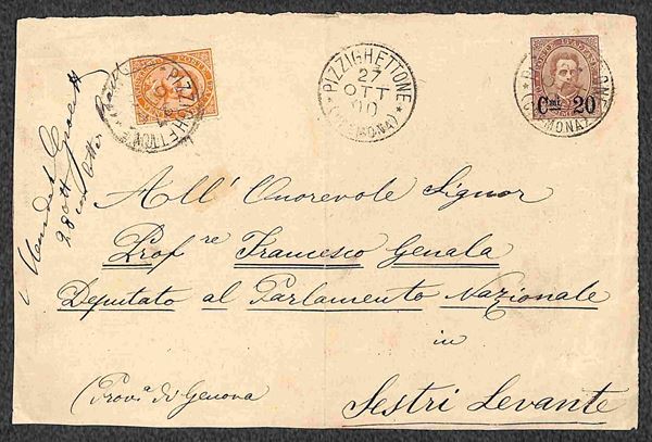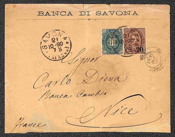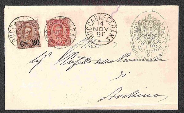 Tre lettere ed un frontespizio affrancati 20 cent su 30 (57) in combinazioni e tariffe differenti con valori di Umberto I