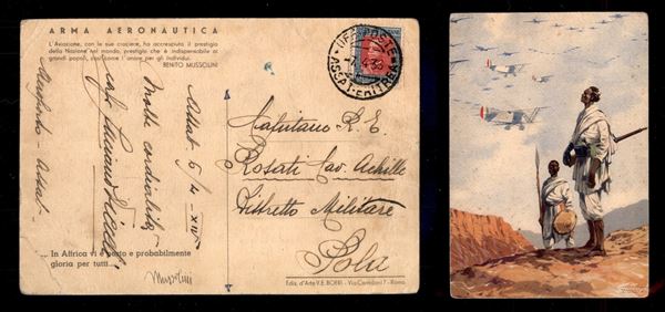 Uff. Poste Assab Eritrea - 20 cent (196) su cartolina per Pola del 7.4.36