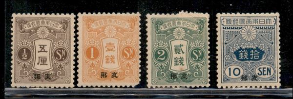 Uffici postali in Cina - 1913 - Insieme di 4 valori dell'emissione (22/23+25+29) - gomma originale