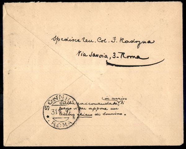 Valori gemelli - Floreale striscia di tre 2 cent + 2 cent +5 cent + 10 cent +7 1/2 cent + Imperiale 5 cent + 7 1/2 cent + 10 cent (69 + 81/2 + 224 + 243/45) - lettera da Roma Ferrovia per Sonnino del 31.10.30