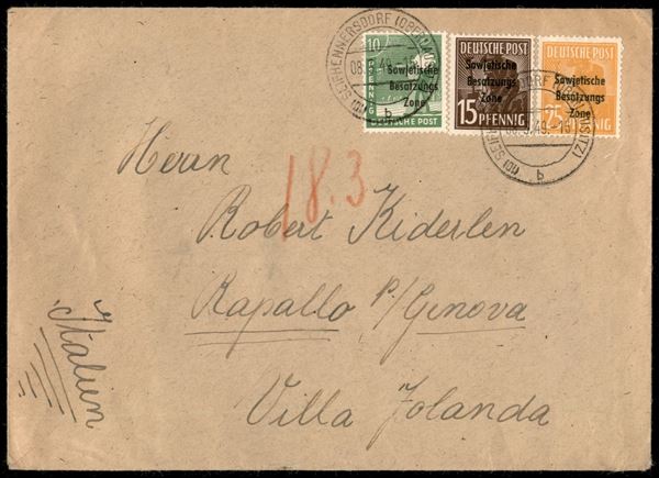 Zona Sovietica - busta da Seifhennersdorf a Rapallo del 8.3.49 (185 +187 + 191)