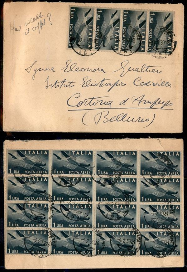 1 lira (126 Aerea) - 20 pezzi su busta da Roma a Cortina del 27.1.50
