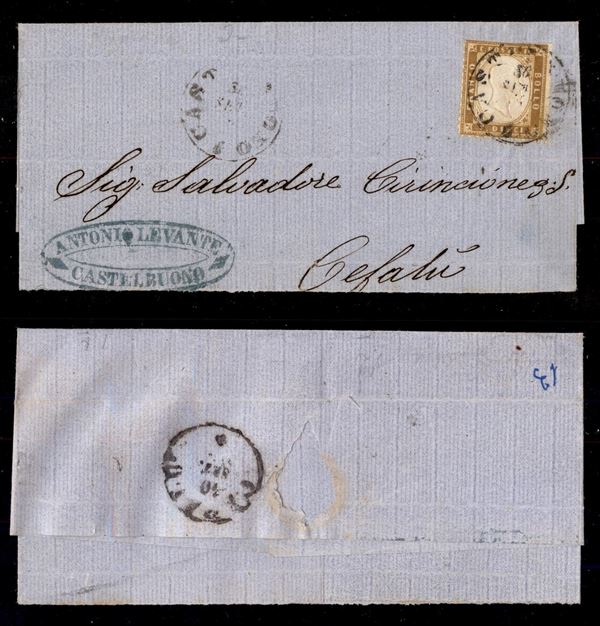 10 cent (1ba - giallo olivastro) - dentellatura ritagliata con le forbici - testatina di lettera da Castelbuono a Cefalù del 30.9.62