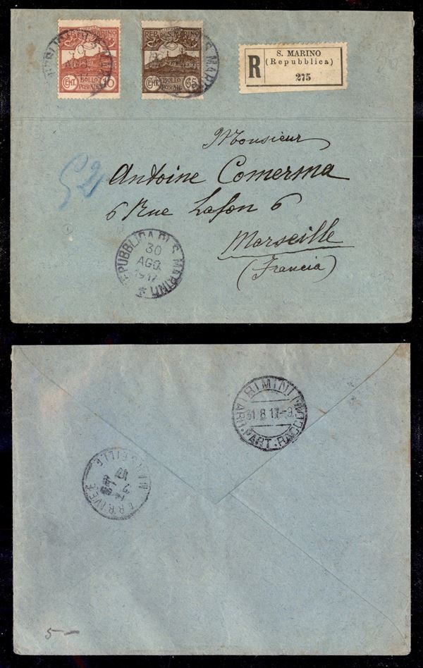 10 cent (36) + 65 cent (42) - raccomandata per Marsiglia del 30.8.17 (180)