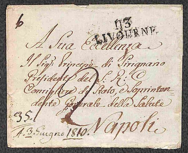113 Livourne - lettera per Napoli del 3.6.1810 - tassata