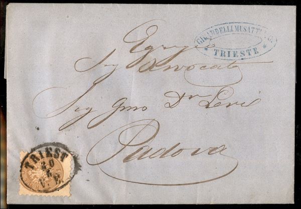 15 kreuzer (34) isolato su lettera da Trieste a Padova del 20.6.65