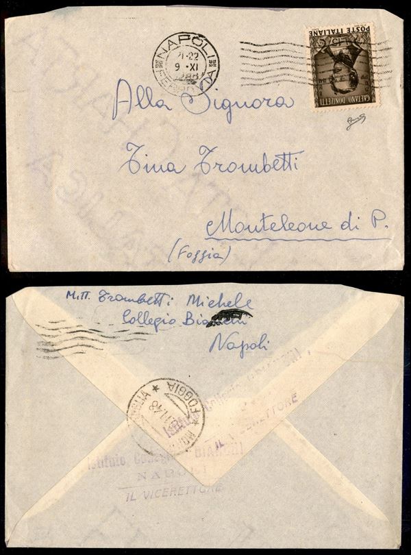 15 lire Donizetti (593) isolato su busta da Napoli a Foggia del 9.11.48 - Biondi
