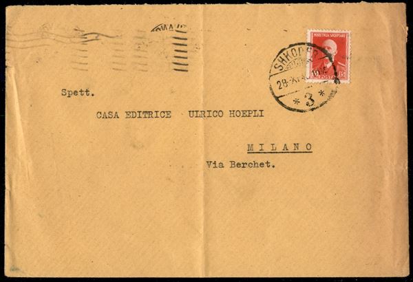 15 qind (21) isolato su busta da Scutari a Milano del 28.11.1940