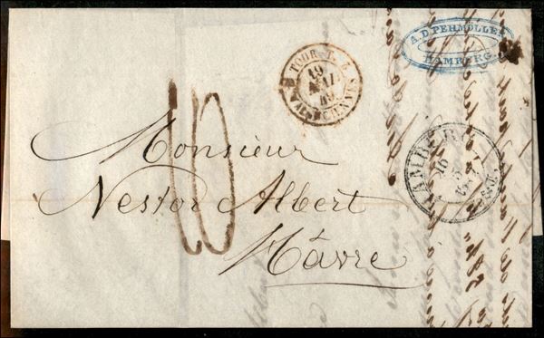 1849 - Lettera da Amburgo a Le Havre tassata in arrivo