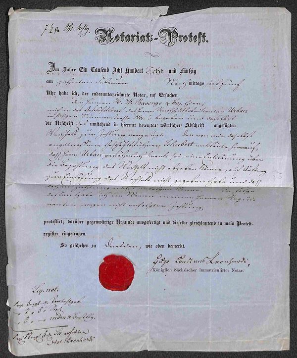 1858 - Atto notarile di Protesto - Wohlen 10.2.1858