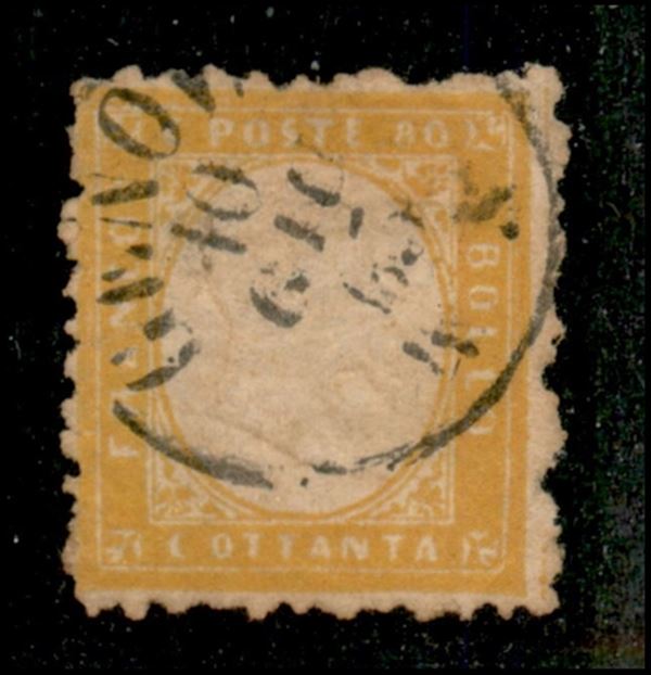 1862 - 80 cent (4) usato a Genova il 10.6.63 - piccolo strappo a sinistra - Diena (3.750)