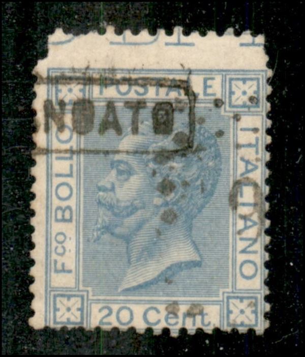 1867 - 20 cent (26cb) - dentellatura superiore spostata sul bordo con diciture marginali - cert. AG (4.000)