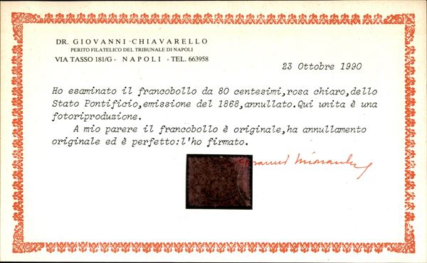 1868 - 80 cent (30) - usato - cert. Chiavarello
