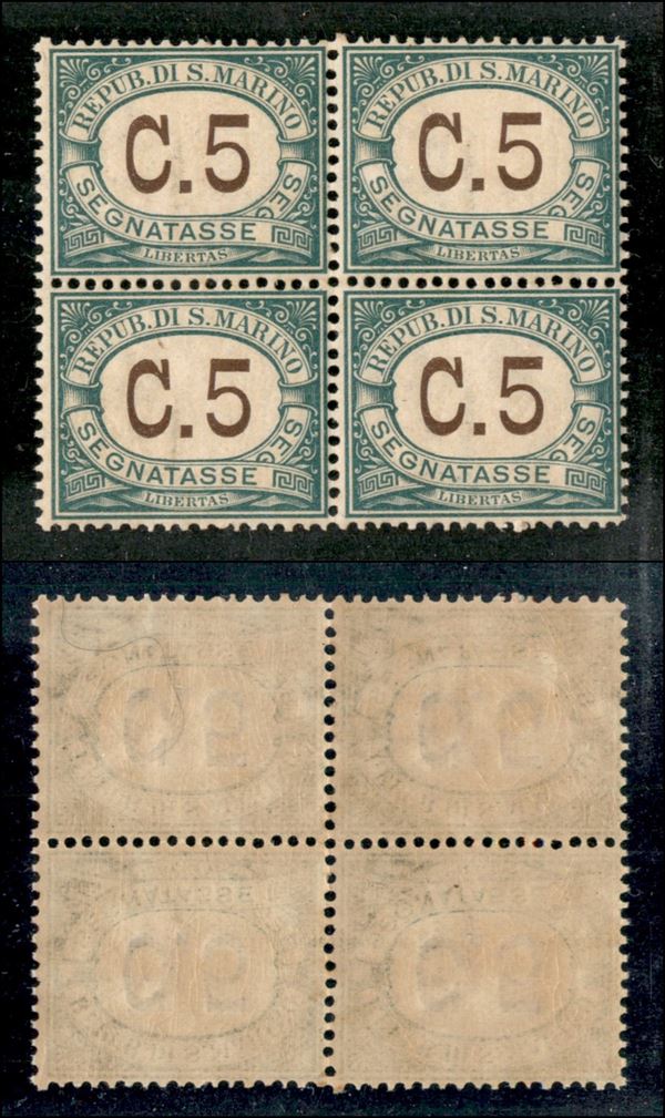 1897 - 5 cent (1) in quartina - gomma integra - ottimamente centrati (240++)